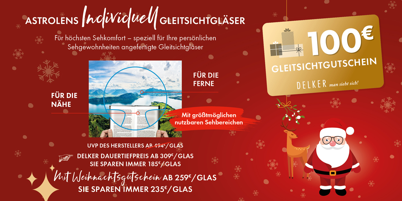 Das Schnäppchen zum Jahresende! 100€ Gleitsichtgutschein*! Nur bis 31.12. in allen DELKER Filialen!